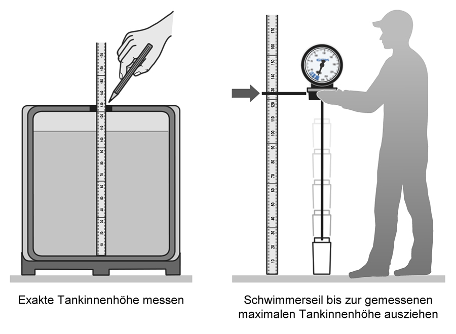 - Anschließend Schwimmerseil des FSA-E auf die ermittelte Tankinnenhöhe ausfahren