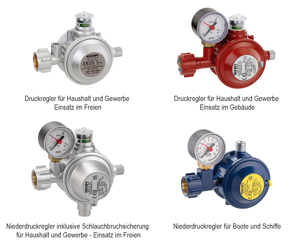 Die Überdrucksicherheitseinrichtung S2SR kann der Betreiber nicht nachrüsten. Sie ist vorwiegend in Druckreglern für Kleinflaschenanlagen (5 und 11 Kilogramm-Gasflaschen) integriert oder eben auch nicht. Nachfolgend eine kurze Auswahl an Modellen mit integrierter S2SR:
